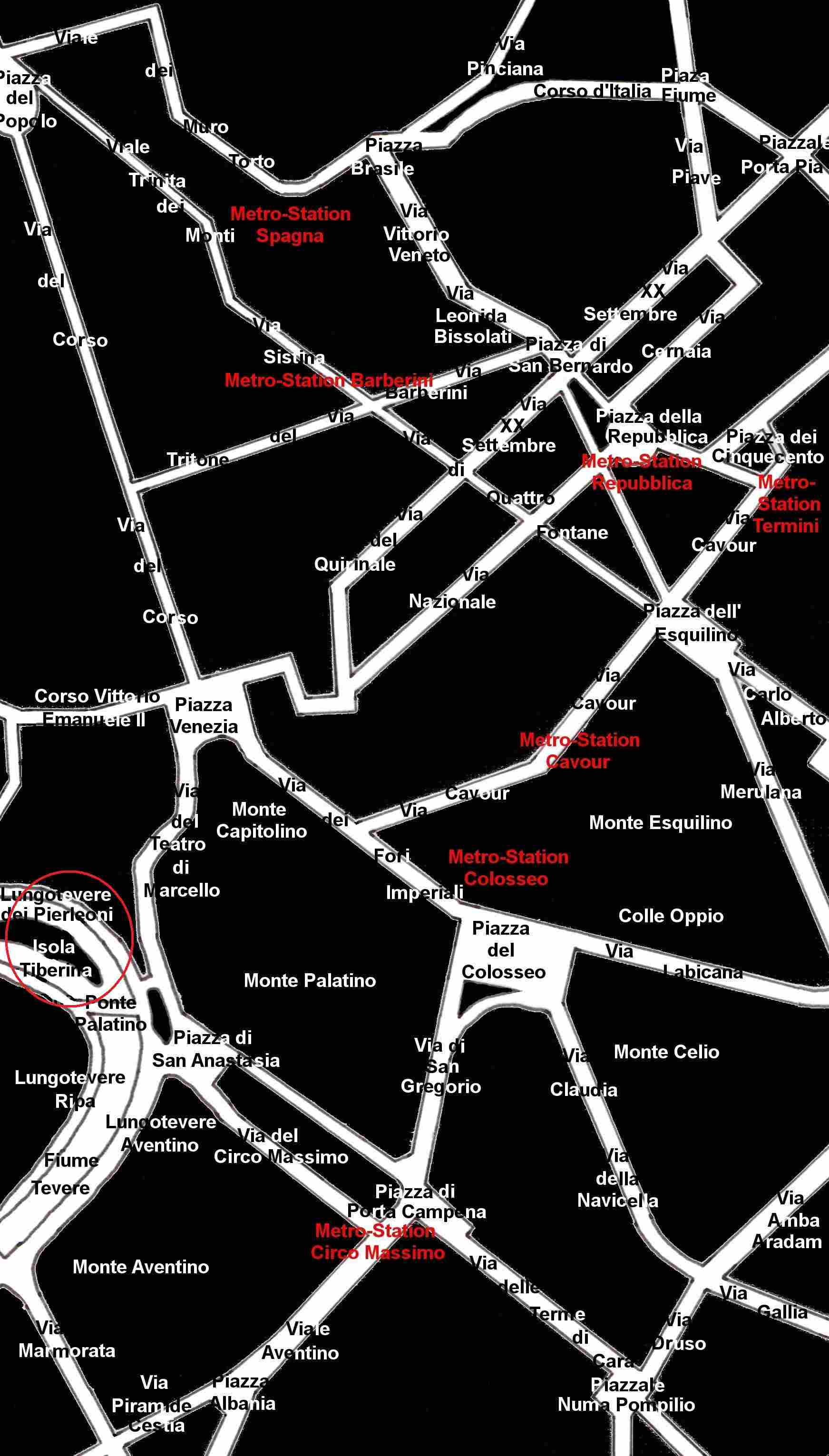 Italien Rom Sehenswürdigkeiten: Stadtplan Rom Tiberinsel